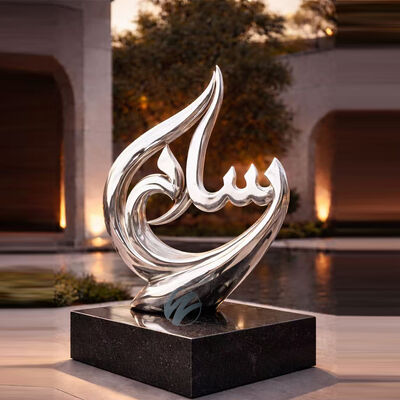 "MIŁOŚĆ" w srebrze – inspirowana arabskim stylem rzeźba ze stali nierdzewnej z efektem lustra do luksusowych przestrzeni